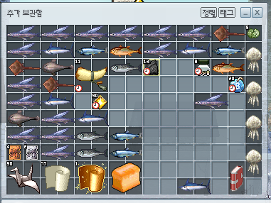 낚시통 교환권으로 습득 (교역 100만 두카트 or 유저간 거래) - 100칸 튼튼한 낚시통 교환권 습득 (유저간 거래) - 300칸 |